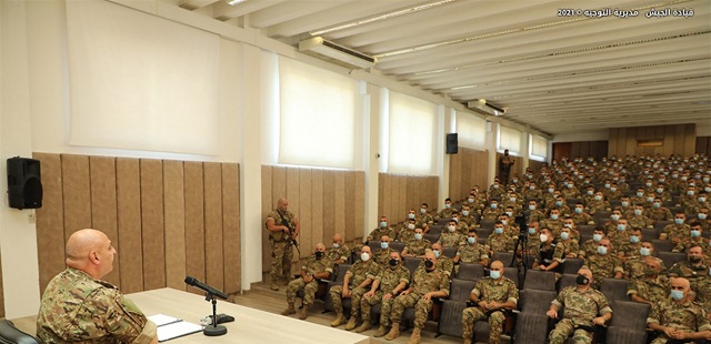 قائد الجيش العماد جوزاف عون يلتقي تلامذة ضباط السنة الثالثة في الكلية الحربية - نقلا عن قيادة الجيش - مديرية التوجيه