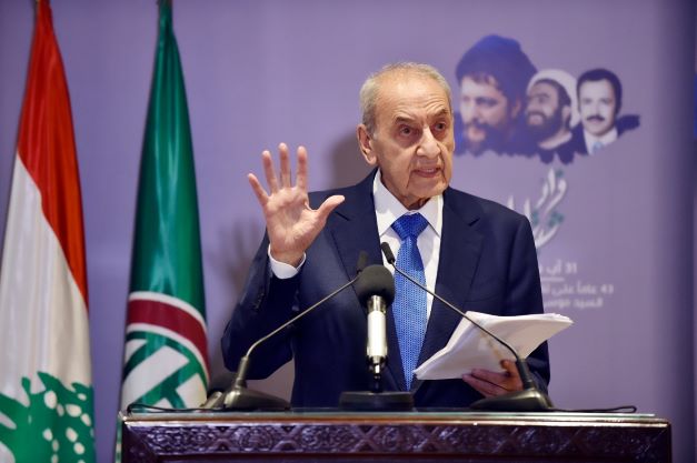 وجه رئيس حركة "أمل" رئيس مجلس النواب نبيه بري كلمة متلفزة إلى اللبنانيين من مقر الرئاسة الثانية في عين التينة، في الذكرى ال43 لتغييب الإمام السيد موسى الصدر ورفيقيه، بحضور عائلة الصدر السيدة رباب الصدر شرف الدين وكريمة الامام السيدة مليحة الصدر والسيد رائد شرف الدين وأشقاء الشيخ محمد يعقوب، وعقيلة الصحافي عباس بدر الدين، ونقيبا الصحافة والمحررين عوني الكعكي وجوزف قصيفي، المدير العام لوزارة الإعلام حسان فلحة وأعضاء هيئة الرئاسة في "أمل".