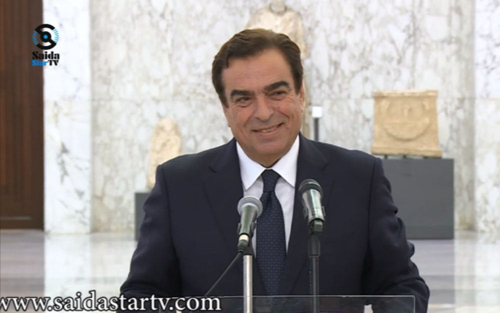 وزير الإعلام جورج قرداحي يتلو مقررات جلسة مجلس الوزراء في قصر بعبدا