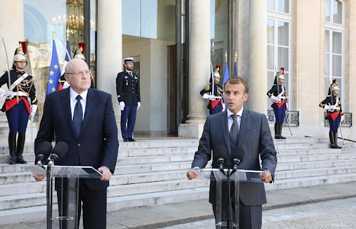 موقف الرئيسين ماكرون وميقاتي جاء في لقاء صحافي مشترك عقب اجتماع العمل الذي عقداه في قصر الاليزيه .