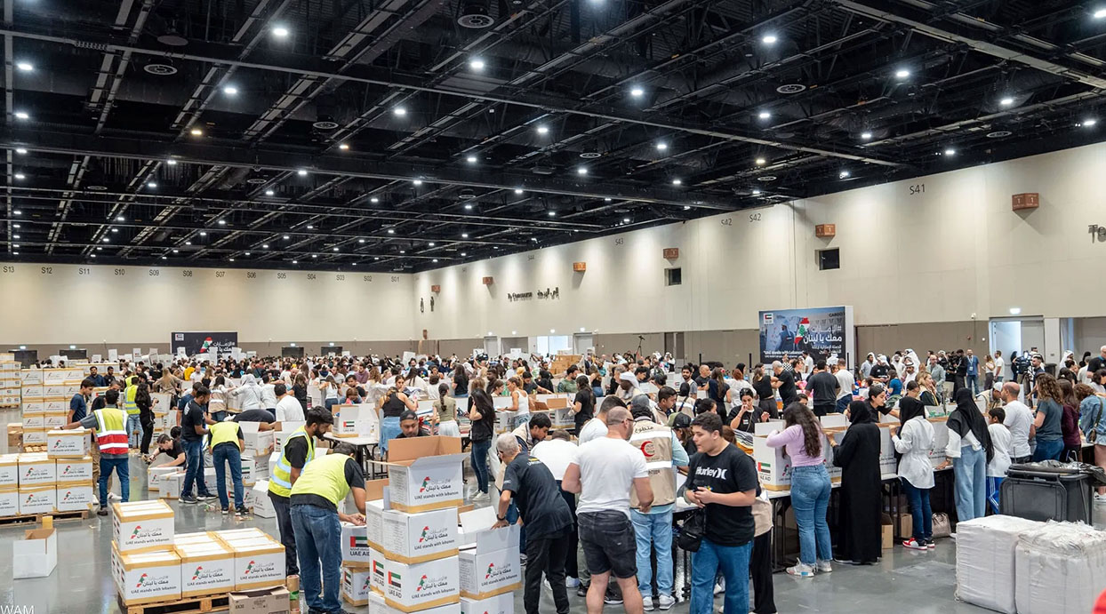 اختتم برنامج أنشطة جمع التبرعات في مركز دبي للمعارض بمدينة إكسبو ضمن الحملة الوطنية الإغاثية "الإمارات معك يا لبنان"؛ بجمع 200 طن من المواد الإغاثية الغذائية والمستلزمات الإيوائية.