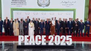 صورة جماعية للقادة ورؤساء الوفود المشاركين في قمة شرم الشيخ .. يتوسطهم الرئيس الأميركي دونالد ترمب