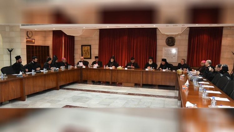 6. يُعرِب الآباء عن بالغ الأسى حيال ما آلت إليه الأوضاع في الدول العربية، ولا سيما في سوريا والعراق وفلسطين، مما يُفاقِم مُعاناة شعوبها، ويُسرِّع هجرتهم إلى أماكن آمنة. وهم يناشدون المسؤولين في هذه البلدان والمجتمع الدَّوليّ العمل على وضع حد للحروب والقتل والدَّمار، والسَّعي الى بناء سلامٍ عادلٍ وشاملٍ على أسس شرعة حقوق الانسان والعدالة والحرِّيَّة والمحبَّة. وحده هذا السَّلام كفيلٌ بفتح الطَّريق أمام لمّ الشمل بين أبناء كل بلد من هذه البلدان، وعودة المهجرين والنَّازحين إلى ديارهم، وتضافر جهودهم لبناء ما تهدَّم في مجتمعاتهم. وإنَّهم يذكرون دائمًا بصلواتهم المخطوفين في سوريا ولا سيَّما أخويهم المطرانين بولس يازجي ويوحنَّا ابراهيم، مطالبِين المجتمع الدَّوليّ الكشف عن مصيرهما والعمل على إعادتهما إلى أبرشيَّتيهما في أقرب وقتٍ ممكن.